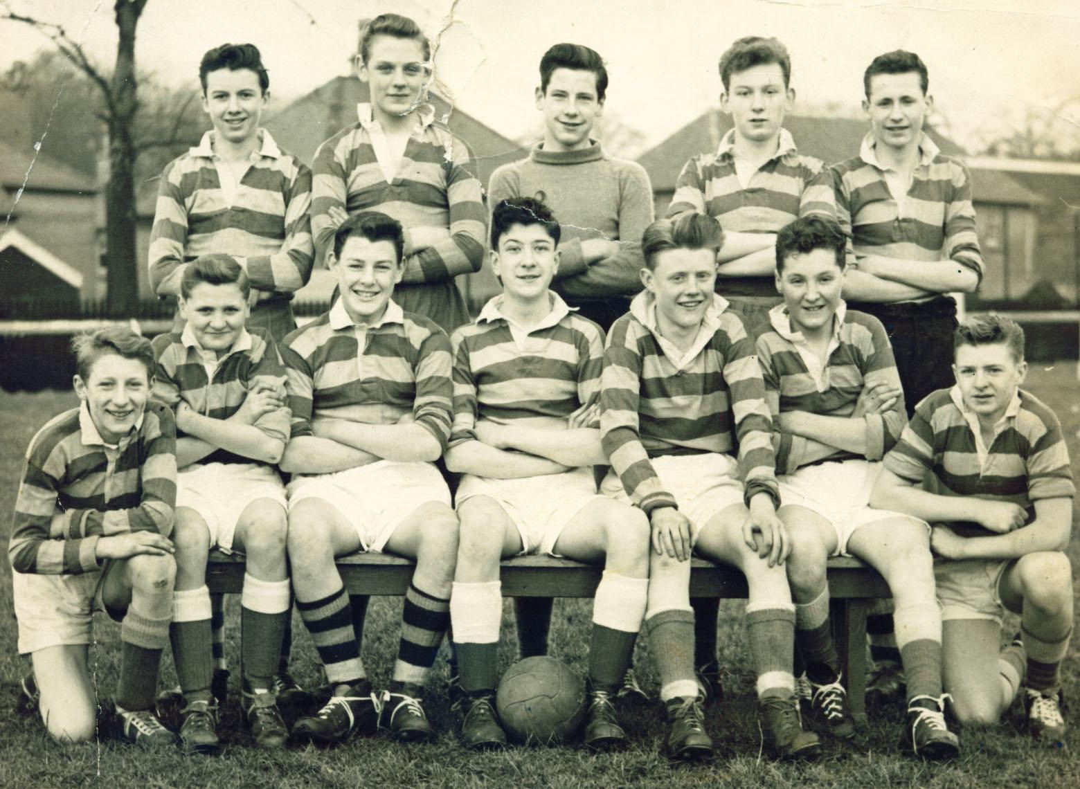 Lovely to meet you both on Thursday at the launch of the new Breathing Space Bench. As promised here is the photo of the Wishaw High School Football Team from 1957-58 from my father in law John Wallace sitting next to Tommy. Back row: John Bulloch, Kirkpatrick, Cooper, Robertson, Thomson Hector. Front row: Tommy Gemmell, John Wallace, Stark, Todd, Rodger, Cleland, Fraser